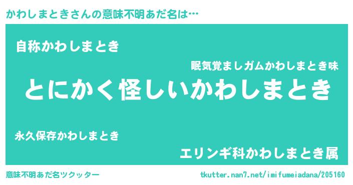 | 欧米人風あだ名 | 『かわしまとき・ステッグマイヤー』 |