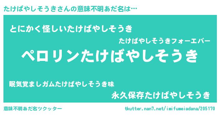 | 欧米人風あだ名 | 『たけばやしそうき・ステッグマイヤー』 |