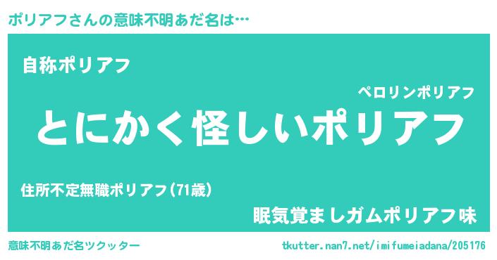 | 欧米人風あだ名 | 『アンジェラ・ポリアフ』 |