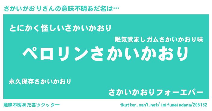 | ポケモン風あだ名 | 『サカチュウ』『ヒサカイカオリ』 |