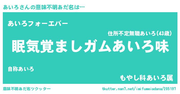 | 欧米人風あだ名 | 『ダニエルあいろ』『あいろクリステル』 |