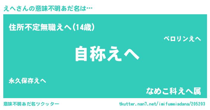 | ヘコむあだ名 | 『えへふぇ~』『えへ(笑)』 |