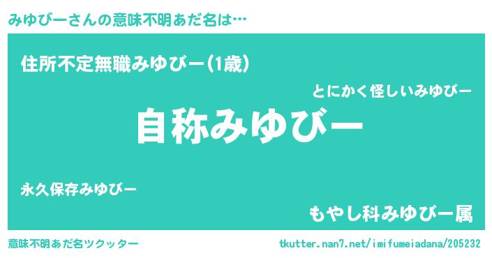 | 欧米人風あだ名 | 『ケンブリッジみゆびー』 |