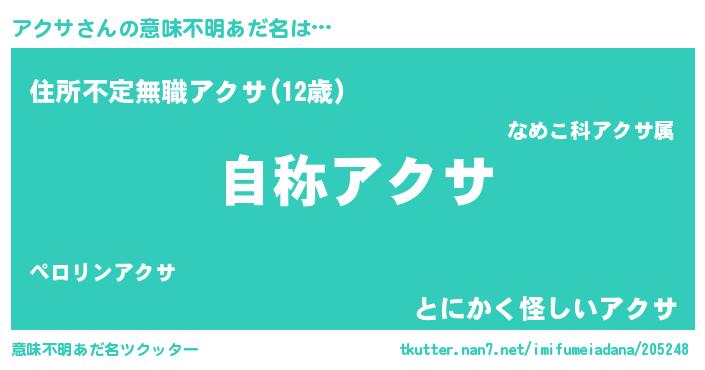 | 女子向けラノベタイトル風あだ名 | 『アクサなんてお断りですっ。』 |