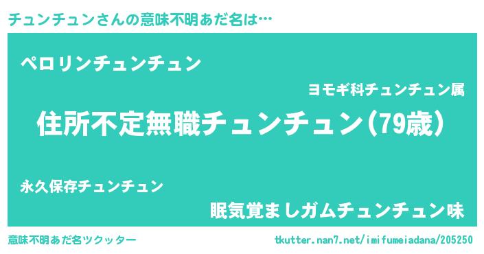 | ヒーロー風カッコイイあだ名 | 『仮面チュダー』『スーパーチュンチュン』 |