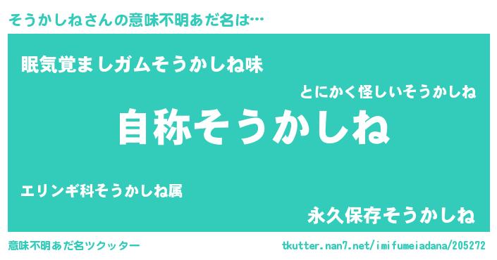 | 肩書あだ名 | 『そうかしね総統』『そうかしね助教授』 |