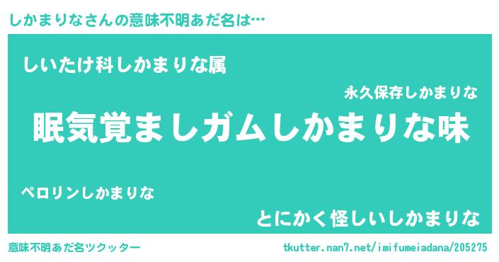 | 女子向けラノベタイトル風あだ名 | 『しかまりな恋絵巻』 |