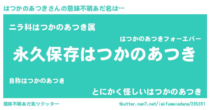 | ヘコむあだ名 | 『はつかのあつき(爆)』『はつお』 |