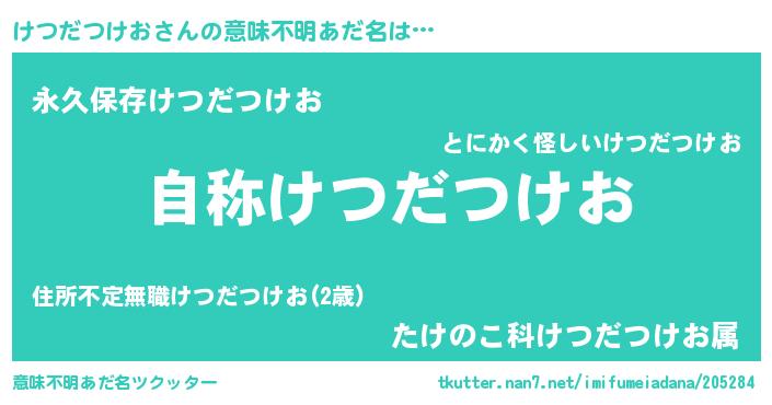 | ヘコむあだ名 | 『けつだつけお(笑)』『けつぷりん』 |