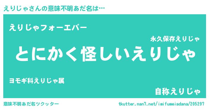 | 男性向けラノベタイトル風あだ名 | 『えりじゃの嫁は女の子じゃないと思った?』 |