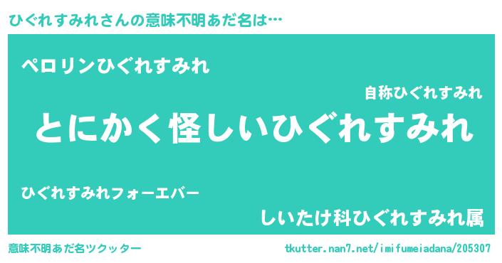 | 男性向けラノベタイトル風あだ名 | 『ひぐれすみれの嫁は女の子じゃないと思った?』 |