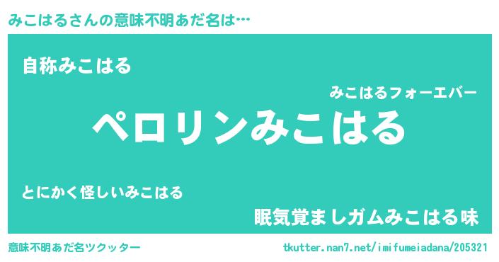 | 欧米人風あだ名 | 『マイケルみこはる』『ダニエルみこはる』 |