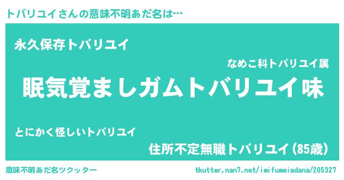 | ポケモン風あだ名 | 『トックウザ』『トバゴンZ』 |
