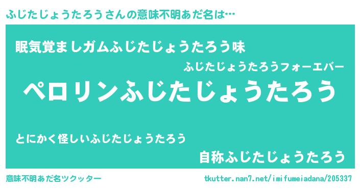 | 女子向けラノベタイトル風あだ名 | 『ふじたじょうたろう姫と円卓の騎士』 |