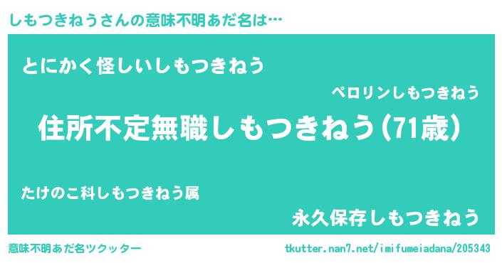 | ヘコむあだ名 | 『しもっぺ』『しもつきねう(震え声)』 |