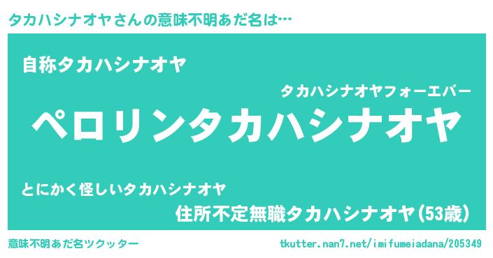 | 男性向けラノベタイトル風あだ名 | 『タカハシナオヤアートオンライン』 |