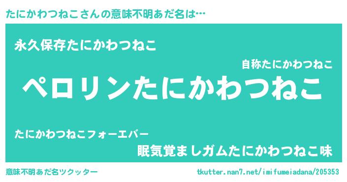 | ヒーロー風カッコイイあだ名 | 『スーパータニカワツネコ』 |