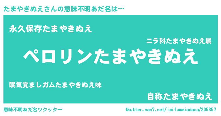 | 可愛いあだ名 | 『たんたん』『たまやきぬえママ』 |