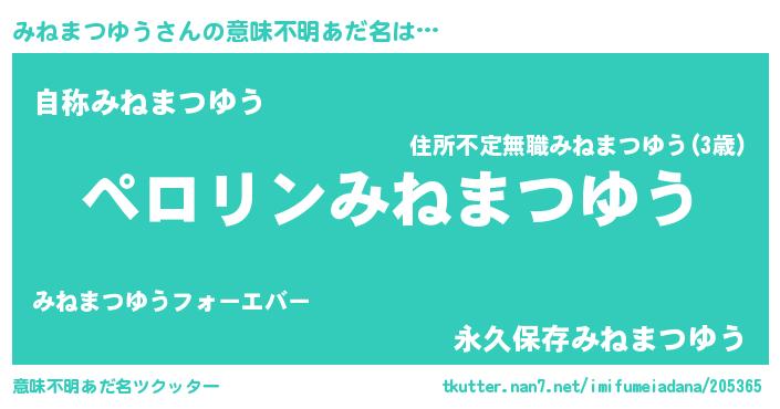 | 男性向けラノベタイトル風あだ名 | 『みねまつゆうの憂鬱』 |