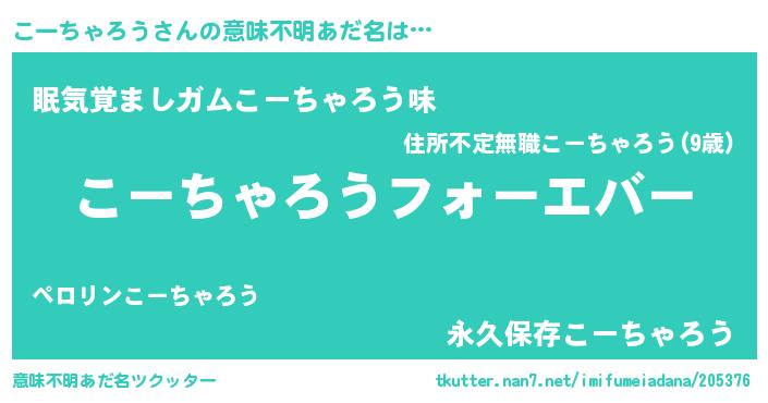 | 欧米人風あだ名 | 『こーちゃろうクリステル』 |