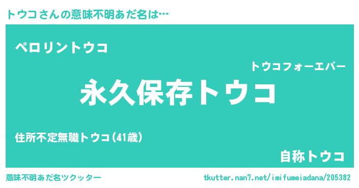 | ヘコむあだ名 | 『トウコ(笑)』『トウにー』『トウお』 |