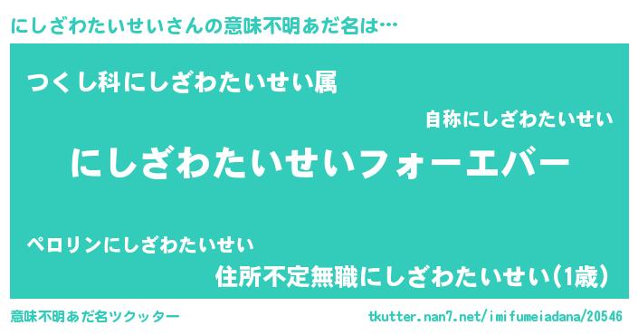 | ファンタジー風あだ名 | 『エターナルニシザワタイセイー』 |