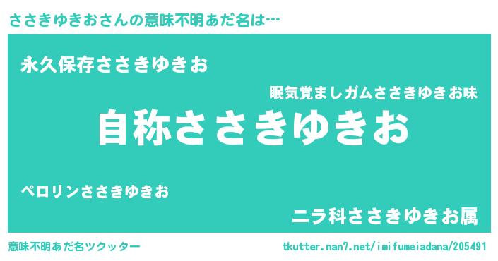 | 男性向けラノベタイトル風あだ名 | 『ささきゆきおに滅ぼされるだけの簡単なお仕事です』 |