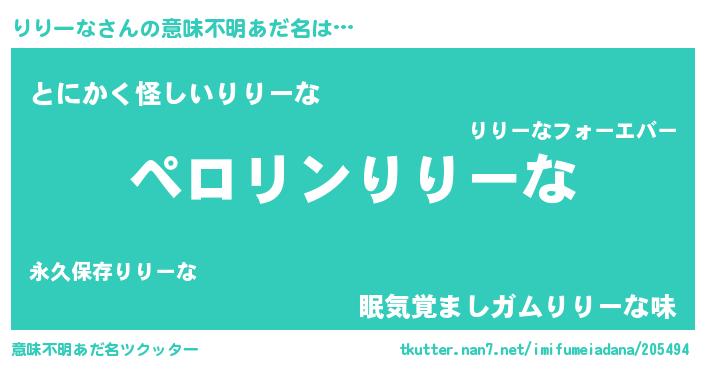 | 欧米人風あだ名 | 『りりーな・ステッグマイヤー』 |