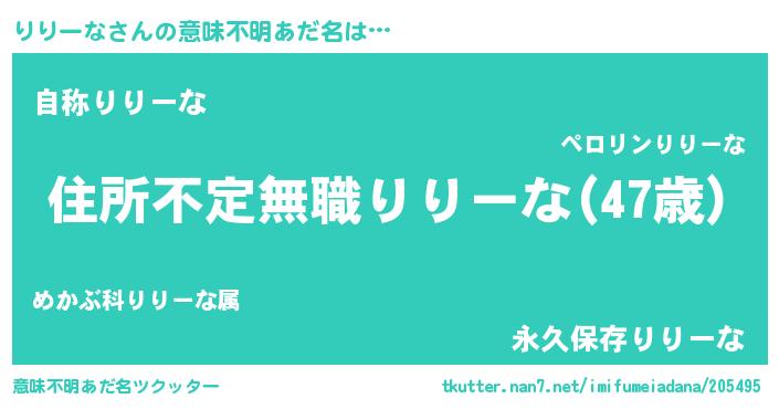 | ヘコむあだ名 | 『りりーな(笑)』『りりもー』『豆乳』 |