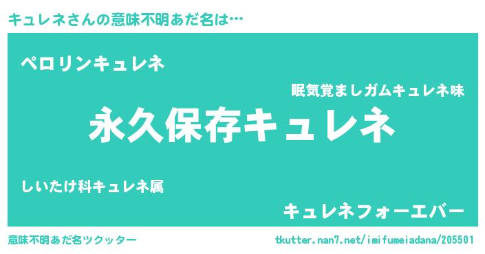 | ヒーロー風カッコイイあだ名 | 『ネオキュレネ』『スーパーキュレネ』 |