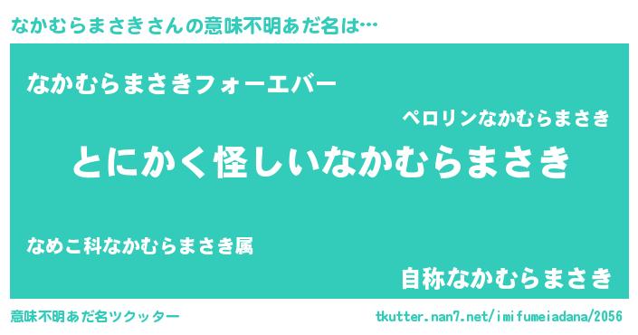 | 男性向けラノベタイトル風あだ名 | 『なかむらまさきの嫁は女の子じゃないと思った?』 |