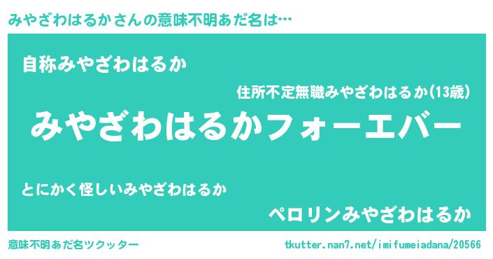 | ファンタジー風あだ名 | 『エターナルミヤザワハルカー』 |