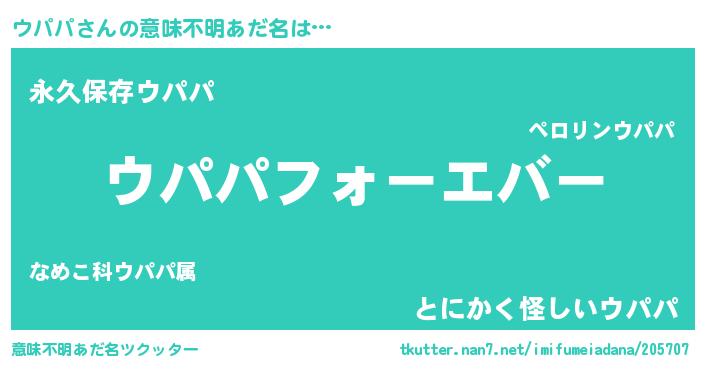 | 男性向けラノベタイトル風あだ名 | 『緋弾のウパパ』『はたらくウパパさま!』 |