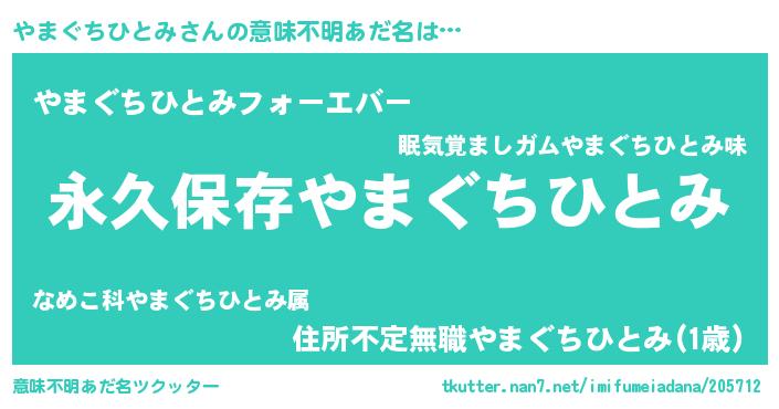 | ヘコむあだ名 | 『やまぐちひとみ(小並感)』『酢こんぶ』 |
