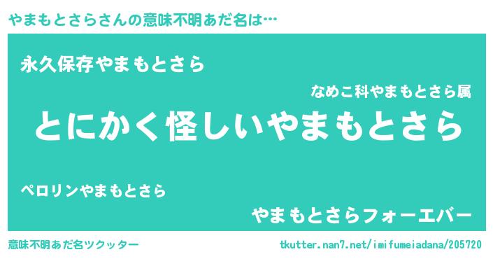 | 男性向けラノベタイトル風あだ名 | 『やまもとさらの嫁は女の子じゃないと思った?』 |