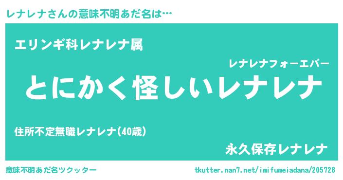 | ヘコむあだ名 | 『レナを』『レナレナ(震え声)』 |