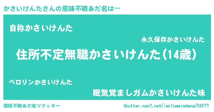 | 男性向けラノベタイトル風あだ名 | 『この素晴らしい世界にかさいけんたを!』 |