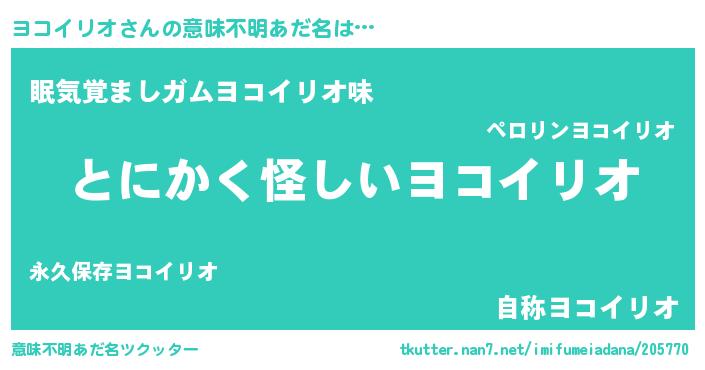 | 男性向けラノベタイトル風あだ名 | 『うちのヨコイリオが世界を掌握している!』 |