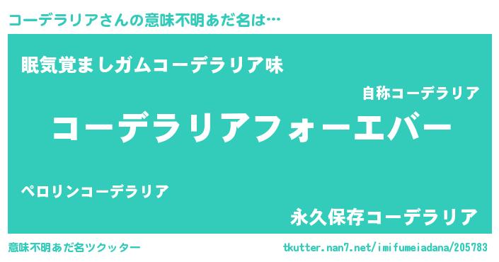 | ファンタジー風あだ名 | 『エターナルコーデラリアー』 |