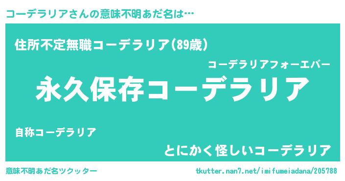 | ヘコむあだ名 | 『コーデラリア(小並感)』『コーっ子』 |