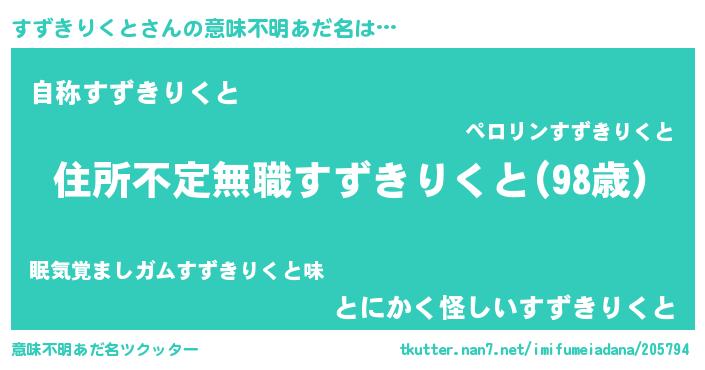| ヒーロー風カッコイイあだ名 | 『仮面スズダー』『最強戦士スズキリクト』 |