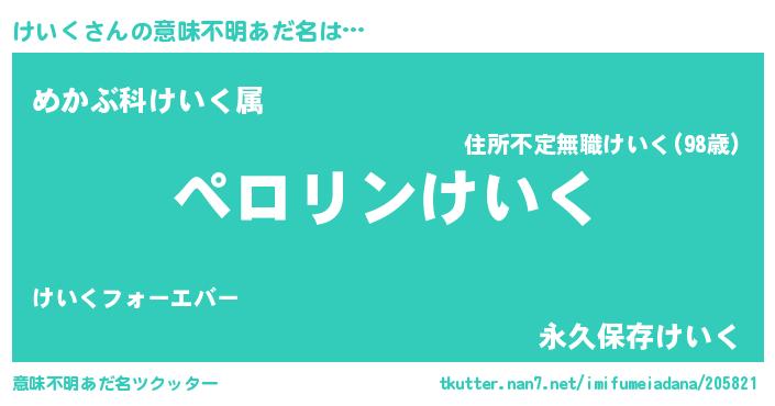| ヘコむあだ名 | 『けいにー』『けいく(小並感)』 |