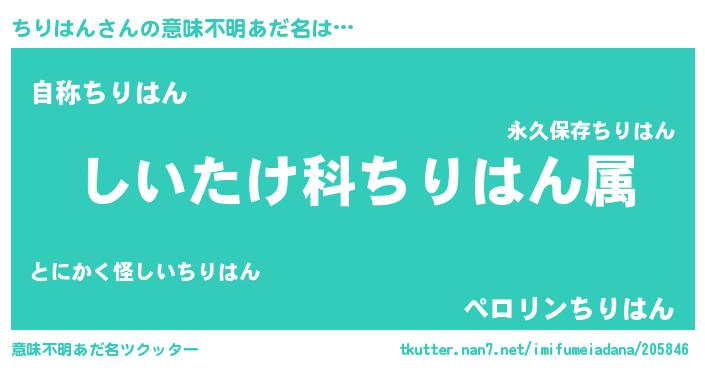 | 料理風あだ名 | 『ちりはんごはん』 |