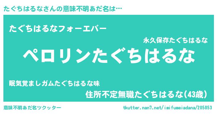 | 胡散臭い通販商品みたいなあだ名 | 『必ず成功する霊験あらたかなお札…その名も「たぐちはるな」』 |