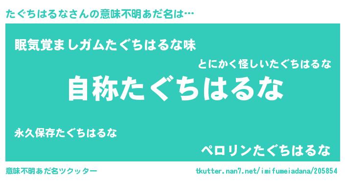 | 男性向けラノベタイトル風あだ名 | 『Re:たぐちはるなから始める異世界生活』 |