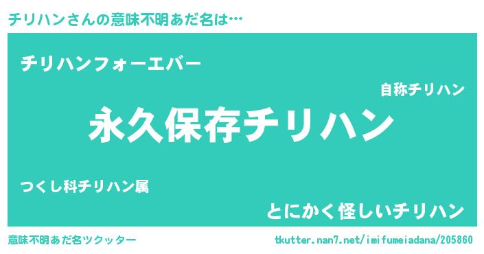 | 胡散臭い通販商品みたいなあだ名 | 『絶対に幸福をもたらす水素水…その名も「チリハン」』 |