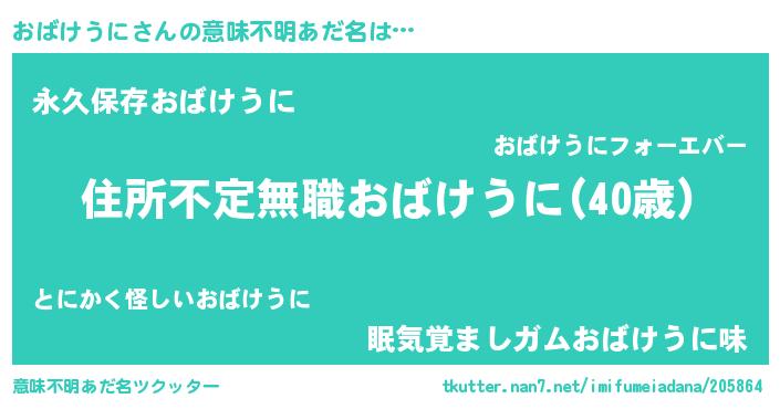 | 男性向けラノベタイトル風あだ名 | 『この素晴らしい世界におばけうにを!』 |