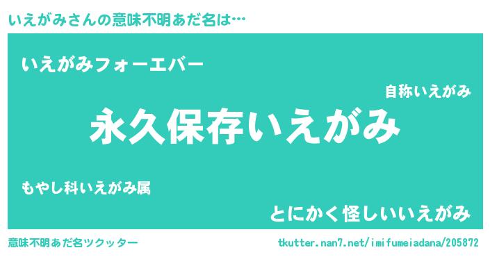 | ヒーロー風カッコイイあだ名 | 『ネオイエガミ』『ウルトラいえがみマン』 |