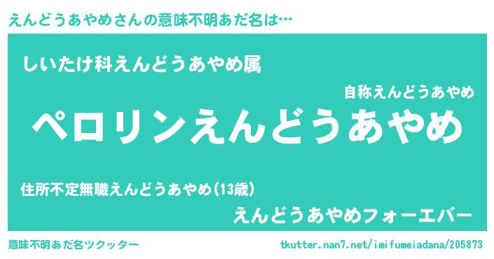 | 欧米人風あだ名 | 『マイケルえんどうあやめ』 |