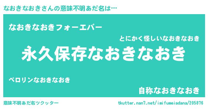| 男性向けラノベタイトル風あだ名 | 『なおきなおきという概念が存在しない退屈な世界 』 |